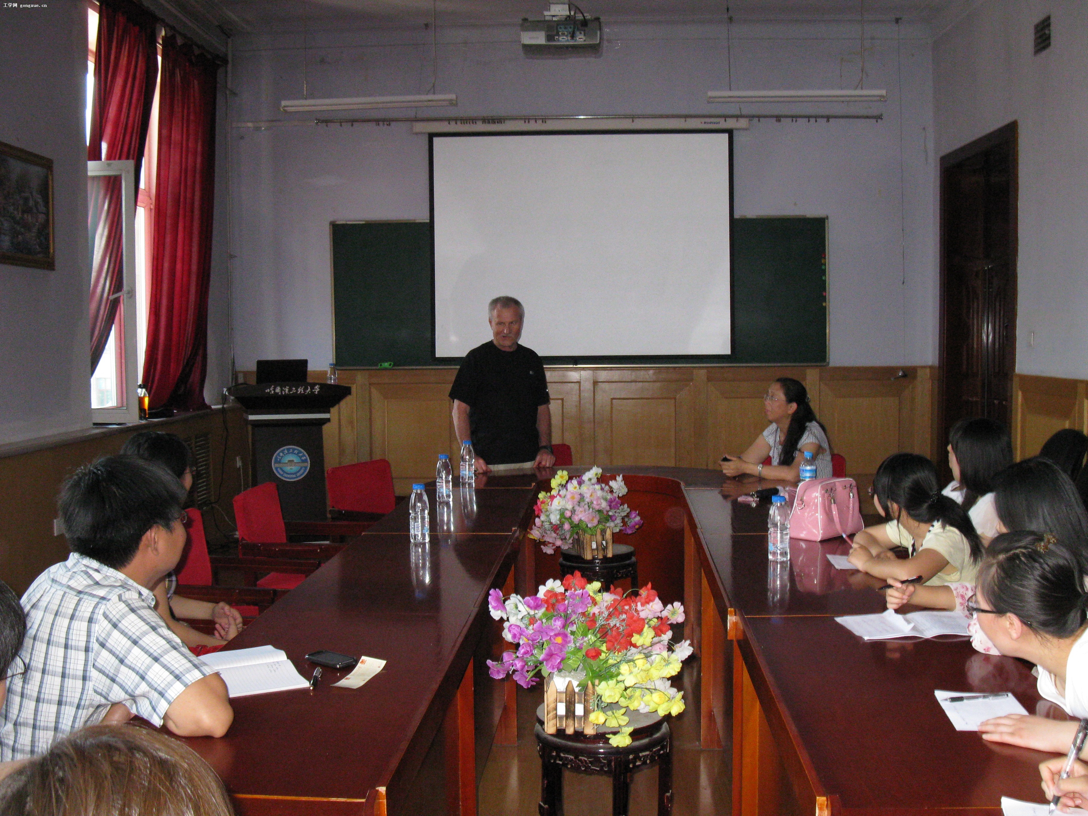 7月5日上午,美国学者Leon先生在思政教研部小会议室,与思政教研部教师和研究生代表二十余人进行了研讨和座谈,思政教研部副主任程早霞教授、人文公司教授张冬老师出席此次座谈活动,座谈会持续两个小时。在座谈中Leon先生对美国阶段性国民教育、爱国主义教育以及国民教育类型等方面作了细致的介绍,参加座谈的思政教研部研究生积极参与、踊跃发言、现场气氛热烈。本次座谈会使我部研究生对美国国民教育有了一定的了解,具有显著的交流效果。  思政教研部 2011年7月5日 |