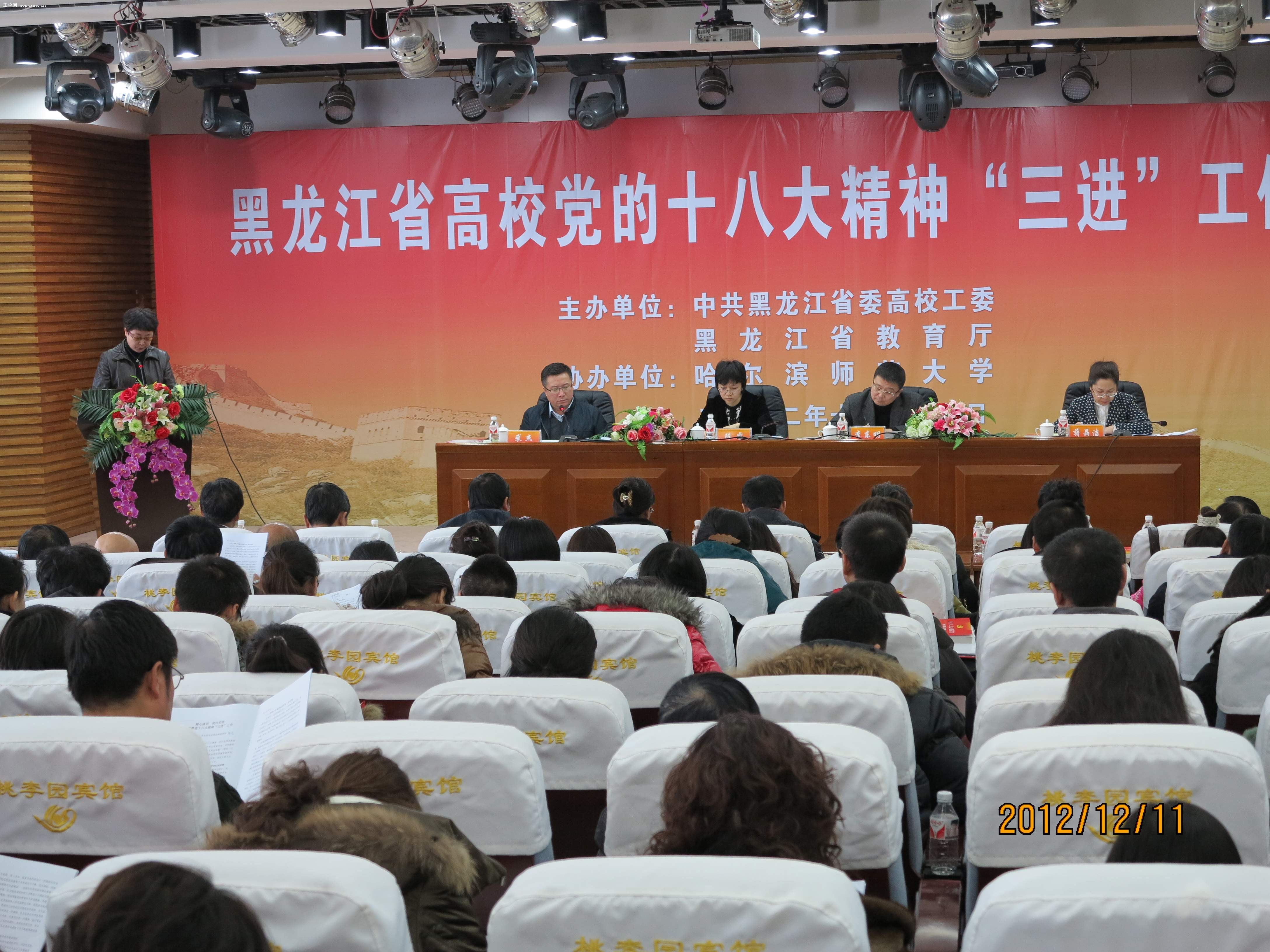 为深入学习贯彻党的十八大精神,积极推进十八大精神进教材、进课堂、进员工头脑工作,省委高校工委和省教育厅于12月11日在哈尔滨师范大学召开党的十八大精神“三进”工作研讨会,我部教师七人参加了研讨会,研讨会上思政教研部主任陈坤代表yl23411永利以“精心谋划,突出实效,扎实推进十八大精神‘三进’工作”为题,进行了交流发言。