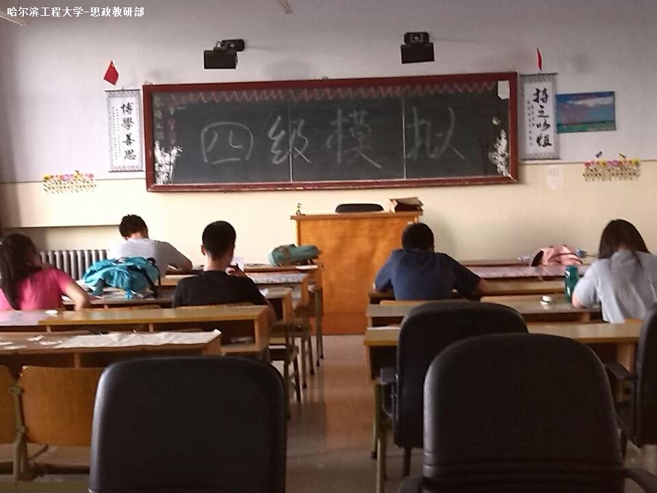 2013年6月13日下午四时整,由思政部学习部举办的四级模拟考试在41号楼思政部专教举行,主持此次模拟考试的是学习部部长孟晨,共有5名同学参加此次模拟考试。 下午四时整,英语四级模拟考试正式开始。由学习部部长分发四级模拟考试试卷,参加模拟考试的同学们以认真严谨的态度参加了此次考试。考试共进行了2小时,在此过程中,考场气氛安静,严肃,堪比正式考试。下午六时,考试结束。