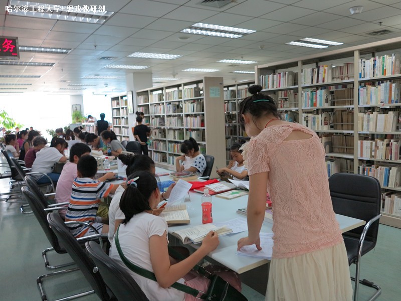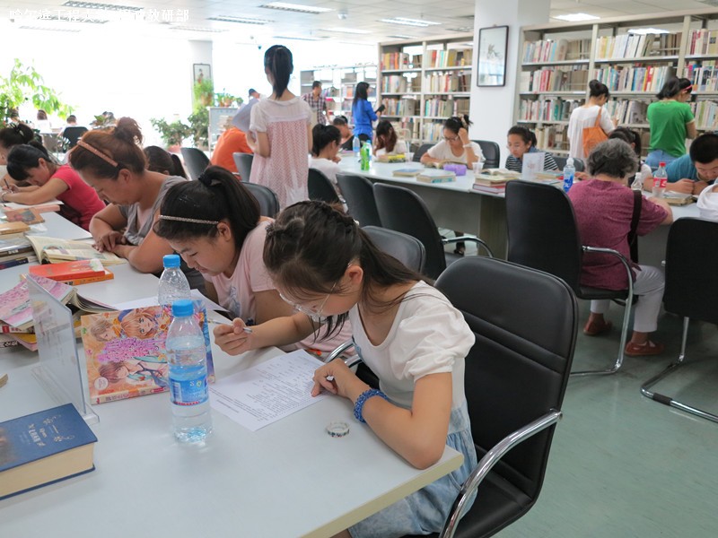 对第四十四中学的问卷调查工作结束后,社会实践服务队的全体成员又来到了黑龙江省图书馆进行第二轮调查。在省图书馆里学习的大多数都是已经开始暑假生活的中小员工们,实践队的小组成员分批进行问卷发放,力求调查结果全面完整。在员工们积极主动的配合下,此次社会实践活动顺利完成。