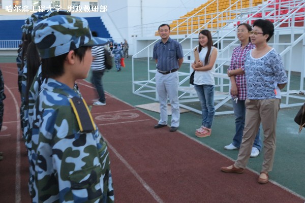 随后,院系领导来到南体慰问仍在军训的女同学。为了不影响军训,由带队教官将女员工带到训练场边。院系领导对女生的辛苦训练表示深切慰问,并和她们悉心交流,询问每位同学具体的生活情况,和员工亲切互动。同学们都深刻地感受到老师的关爱和热情。