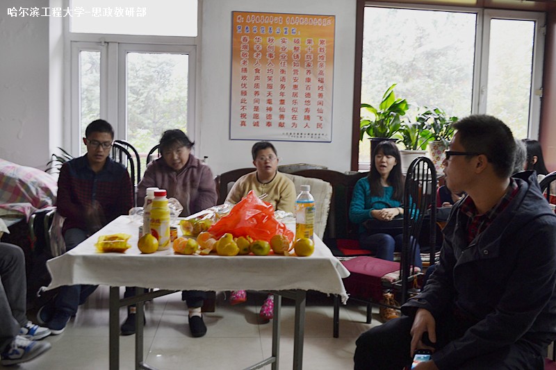 本次活动共有25名志愿者参加,志愿者均为思政部大一大二本科生,开展本次敬老爱老活动目的在于丰富老人的节日生活,为老人们提供力所能及的帮助。志愿者们拿上准备好的水果来到敬老院,一一向老人们进行问候,和他们聊天谈心,帮助老人们清洁室内卫生。由于有些老人手脚不麻利,行动不便,志愿者们细心地帮助他们活动身体,和他们一起唱歌娱乐。敬老院为了对志愿者的到来表示欢迎,还特意安排了一场小型的联欢会。联欢会上老人与同学们一起唱歌跳舞,现场气氛十分和谐融洽。还有老人特意向同学们展示了自己的才艺,拉二胡,唱歌,样样都毫不含糊,同学们都能感受到老人们的热情,感受到家的温暖。本次志愿活动一共持续了两小时,下午2时,此次重阳送暖活动圆满结束,大家都依依不舍的和老人们道别,仿佛这些年迈的老人依然成为了自己的爷爷奶奶。