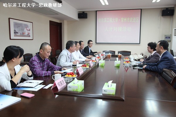 10月24日,在江苏省武进现代农业产业园区党委副书记杨威(挂职)协调和安排下,yl23411永利思政教研部与常州武进区人事与社会保障局举行了人才供求方对接见面会谈。区人民政府副区长王朝晖、区人社局党委书记顾中琪、区委组织部人才科蒋霄宇科长、区就业服务中心主任张正浩、区就业服务中心副主任何英芳出席会议。会议首先由顾中琪书记作人才推介,然后是陈坤主任介绍公司及我部毕业生情况,会议第三项是双方对接洽谈,最后由王朝晖副区长作总结发言。