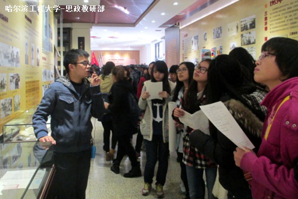 10月31日中午12时20分,思政部组织员工参观哈军工纪念馆。同学们在纪念馆门前集合,由志愿讲解员带领同学们参观。