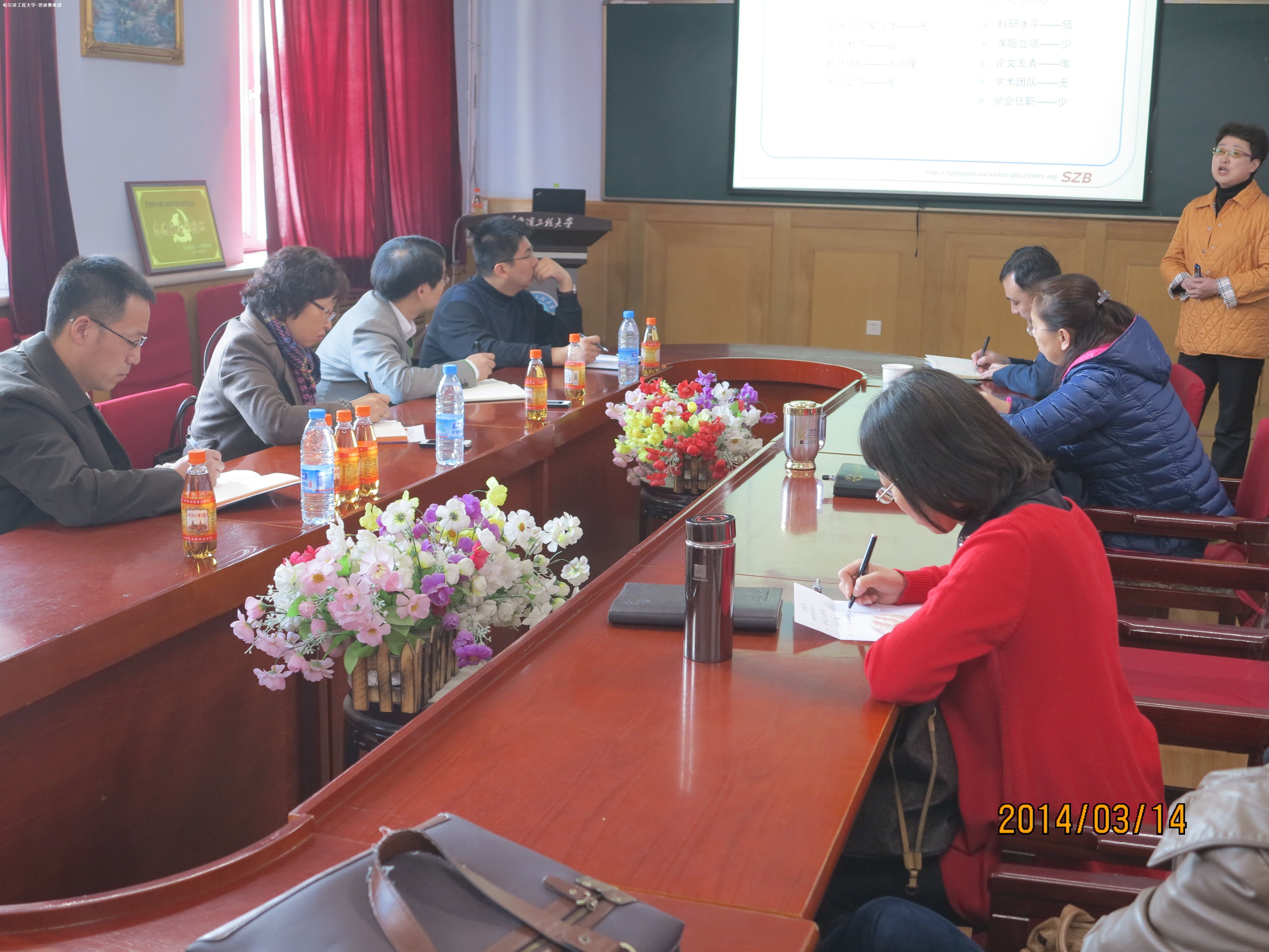 思政部主任兼党总支书记陈坤就思政部团队建设情况及工作计划作了汇报。汇报中,陈坤主任强调:要坚持科学发展观,深入贯彻落实公司第三次党代会精神,进一步解放思想,把加快学科发展作为我部最具战略性、先导性和全局性工作,进一步优化资源配置与学科结构,凝练研究方向,突出和强化学科特色,提高公司产品和人才培养质量,实现团队建设整体水平的提高与高层次的突破。