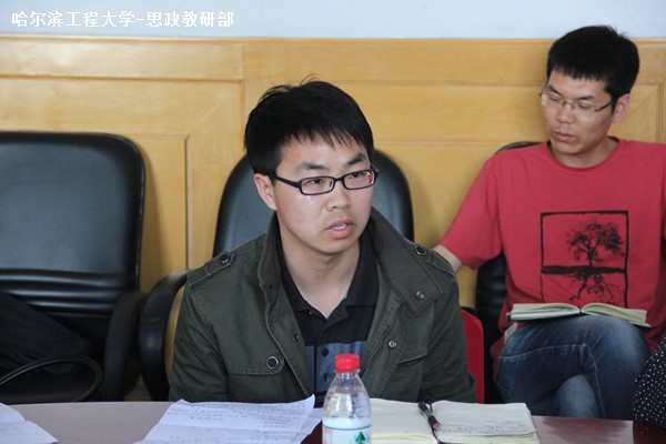思政部2013级博士生代表张素姗指出,学习习总书记系列重要讲话精神即是学习中华民族对青年的希望和要求,深入了解其内涵,做到有理想、有责任、有担当、肯于吃苦、敢于创新,结合校情校史,传承和发扬哈军工精神。