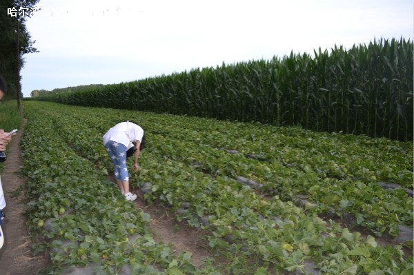 在这次调研过程中,政德村的村民都非常热情,看到同学们冒着炎炎夏日每家每户进行调研,他们便邀请同学们到自家地里去摘香瓜,体验农民采摘过程。
