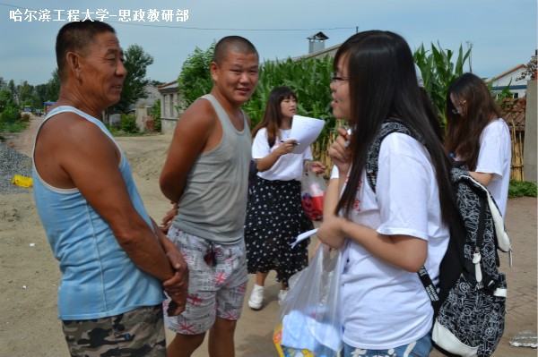 由于本次社会实践队以女生为主,不少政德村的村民都对这支特殊的队伍感到好奇,纷纷上前询问。走访中一位年迈的爷爷使同学们印象非常深刻,他退休前在双城市水利局工作,当我们问到当地的惠农政策时,老人向同学们讲解的非常详细,从政策的施行到农民的受惠效果,让在场的同学们不得不深深的佩服这位老爷爷。