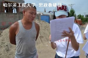 7月22日9时许,永利yl暑期“三下乡”社会实践队在村民的带领下来到哈尔滨市双城市单城镇政德村里的唯一一个创业的人家,一户做门的人家。