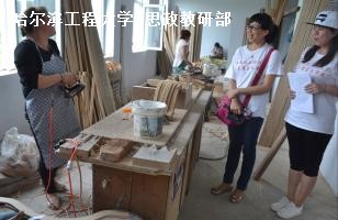实践队员也就一些做门的技术问题与当地的工人进行沟通与交流。