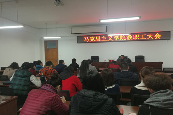 2018年11月9日上午10时,马克思主义公司在主楼420教室召开全体教职工大会,党委书记刘振宇主持会议。