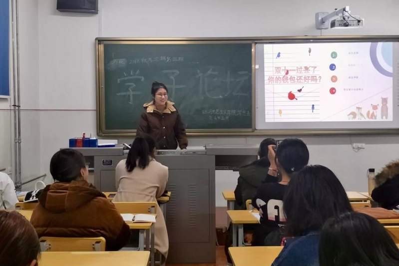 11月12日下午6时30分, 由校员工会生活权益部主办,永利yl员工会生活权益部承办的第四期学子论坛于11号楼3044教室举行,本次活动由张希羽主讲,2018级全体同学参加。