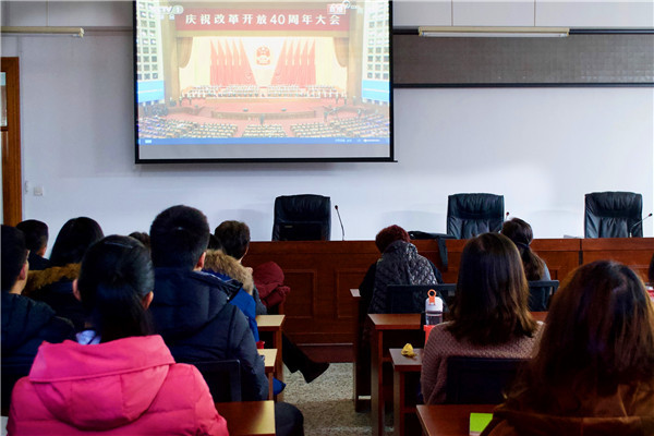12月18日上午10时,永利yl于主楼420教室组织观看庆祝改革开放40周年大会直播。公司全体教师及本硕博优秀员工代表参加本次活动。