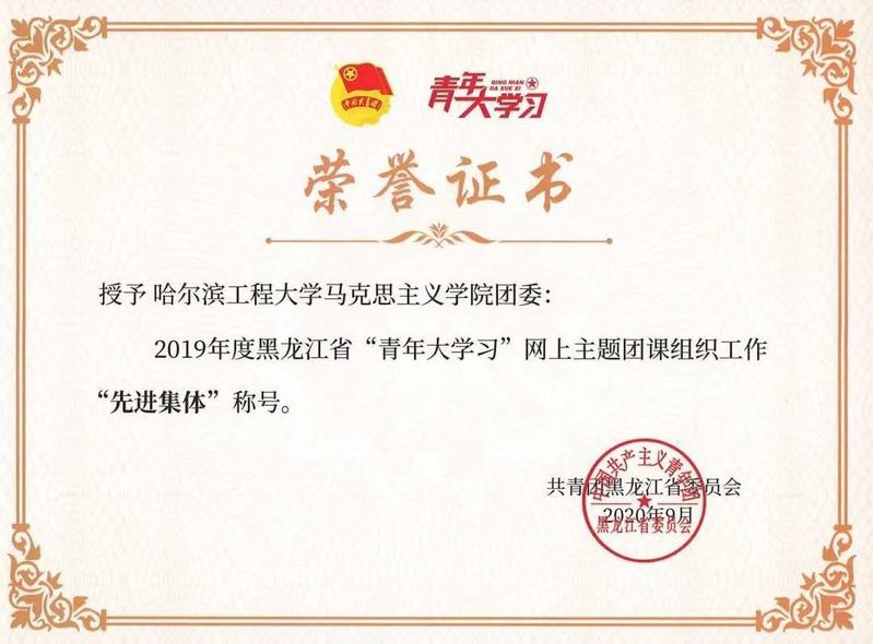 2020年9月,共青团黑龙江省委员会发布了关于表扬2019年度黑龙江省“青年大学习”网上主题团课组织工作先进个人、先进集体、先进组织单位的通报。公司在本次“青年大学习”网上主题团课组织工作评选中斩获多项省级表彰。