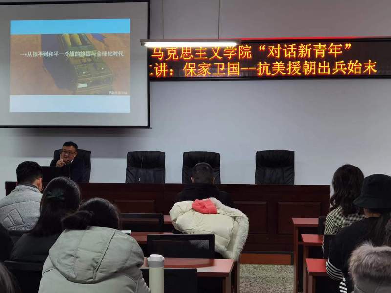 本次活动有幸邀请到永利yl优秀教师王林楠老师,带来“对话新青年”第二讲:保家卫国——抗美援朝出兵始末,梳理抗美援朝史实,让同学们在对抗美援朝历史的再次回顾中发掘抗美援朝精神,思考抗美援朝精神的当代意义,激励同学们艰苦奋斗、共克时坚。
