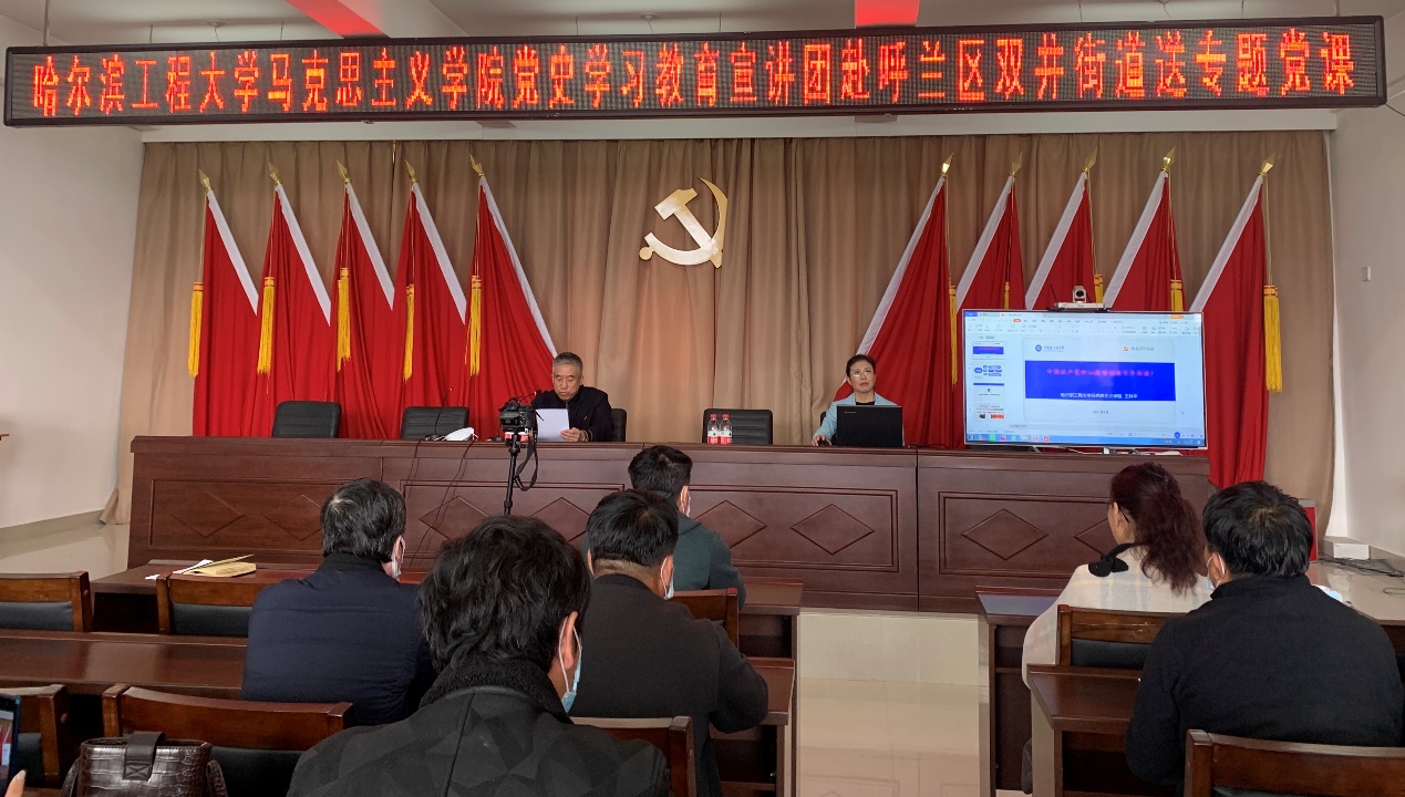 5月8日,为庆祝中国共产党成立100周年,引导广大基层党员干部知党史、颂党恩、听党话、跟党走,增进基层党员干部党性修养,永利yl习近平新时代中国特色社会主义思想“四进”宣讲团选派骨干教师到呼兰区双井街道,开展“党史学习教育”宣讲活动。呼兰区双井街道100余名党政机关干部、各村“两委”班子成员等参加了此次宣讲活动。