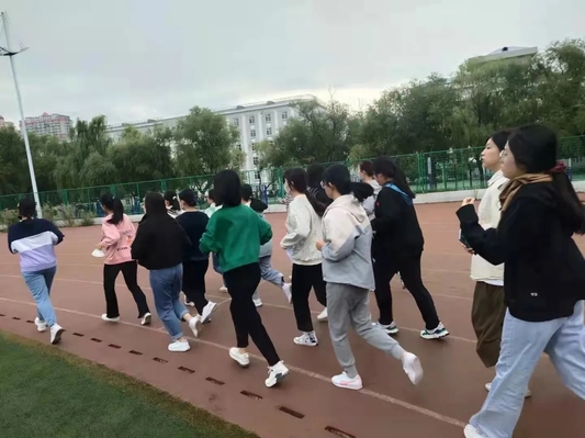 哈尔滨秋天的早晨虽有些清冷但丝毫没有打消新生们对锻炼的期待与热情。带队学姐首先进行了常规点名以确保全员到齐,之后讲解了早操的相关问题,以帮助新生更好地了解早操、热爱早操,达到快乐上操、安全锻炼、强身健体的最终目的,同时为了照顾新同学们的体质,达到锻炼效果,早操采取“跑”“走”相结合的锻炼方法。讲解结束后,新生便有组织地开始了跑步锻炼。早晨的空气格外清新,精神抖擞的新生们迎着朝阳,和着晨风,迈着轻盈的步伐,口号声、喘息声、脚步声使得清晨寒冷的校园充满了温暖的气息。最后新生们在二次点名中完美地结束了第一次早操。