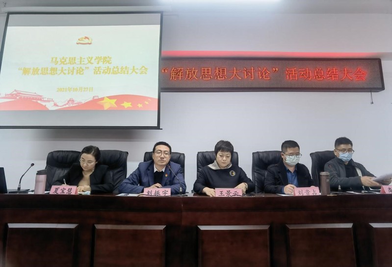 刘振宇作总结发言。他指出,一方面公司面临良好的发展机遇,同时也必将面临激烈的竞争态势,将担负更加繁重艰巨的发展建设任务。全体教工必须进一步“提高站位、解放思想、改革创新、真抓实干”。首先要提高政治站位:做到“六要”的首要标准——政治要强。二要解放思想,做到思想自觉、行动自觉。三要改革创新,思政课建设、团队建设要向改革创新要活力。四要真抓实干,幸福都是奋斗出来的。最后,刘振宇号召全体教工要通过解放思想大讨论,巩固党史学习教育成果,“学党史、悟思想、办实事、开新局”,聚力思政课建设、马克思主义理论团队建设,想干事、能干事、会干事、干成事,不断增强干事创业的志气、骨气、底气。