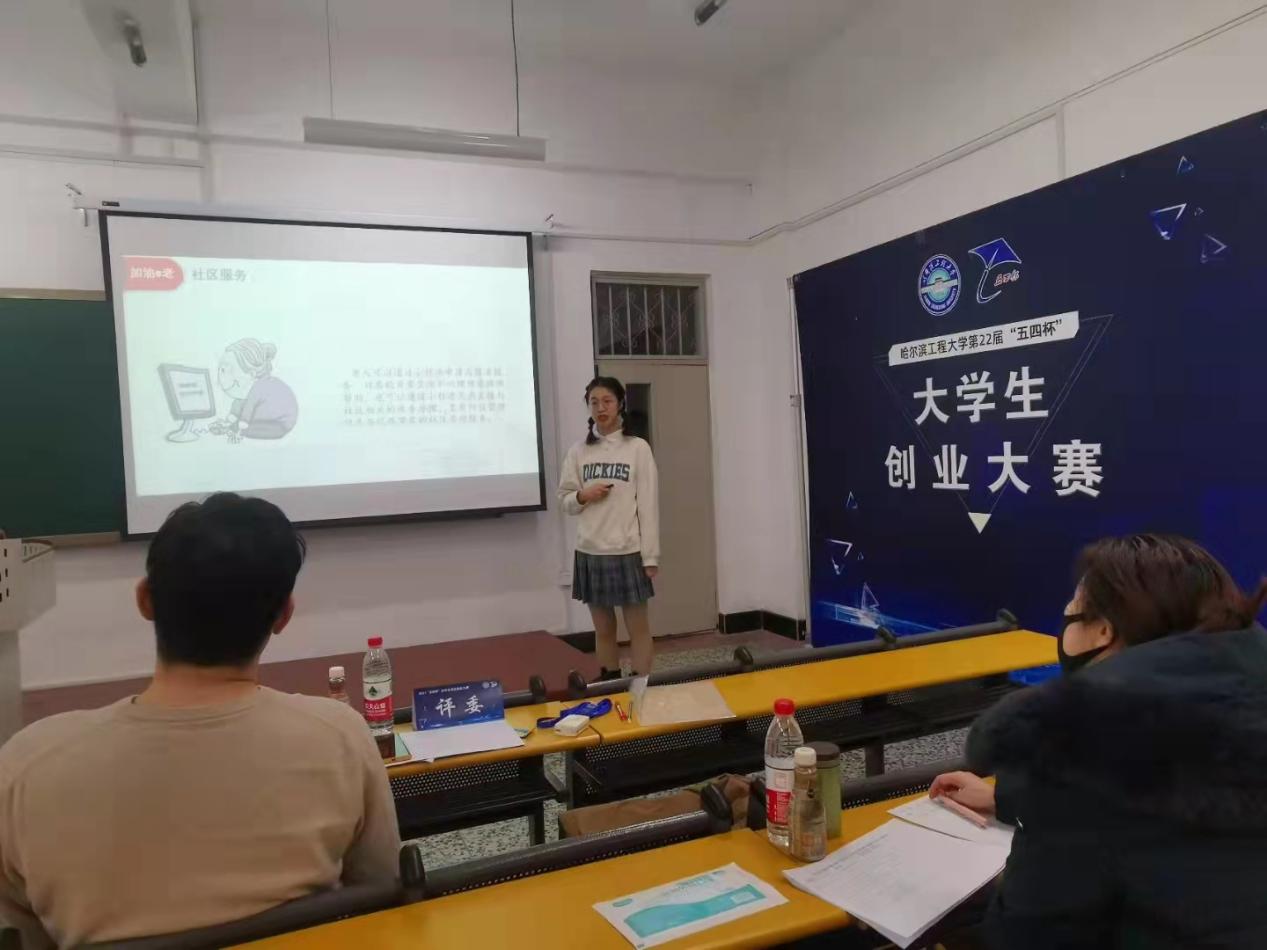 “五四杯”比赛的现场充满着活跃的创新氛围,讲台上有参赛者答辩,宽大的电子屏幕吸引人们驻足。台下被划分为大大小小的展区,桌上摆放着实物模型。“五四杯”鼓励老员工走出课堂组建项目团队,亲历社会调研,使老员工得到了自我成长,引导他们将所学所用回馈社会。
