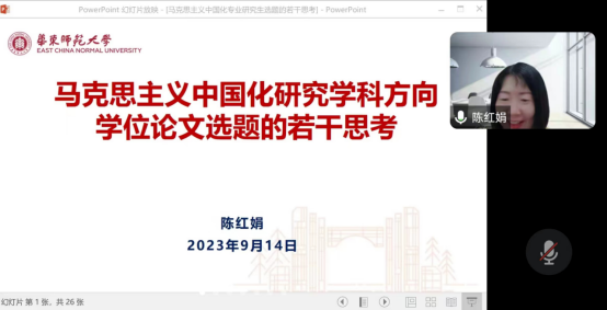 2023年9月14日,马克思主义中国化研究学科方向邀请华东师范大学永利yl博士生导师,北京大学《马藏》编撰与研究中心特聘研究员、上海市“习近平新时代中国特色社会主义思想概论”分教学指导委员会委员陈红娟教授作为主讲嘉宾,以“马克思主义中国化研究学科方向学位论文选题若干思考”为题作线上专题讲座。讲座由马克思主义中国化研究所所长李世辉教授主持,马克思主义中国化研究学科方向部分教师、全体研究生参加本次讲座。