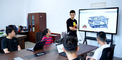陈阳和团队成员在讨论智能巡检机器人的研制